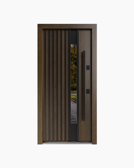 8.880,00 leiPret unitar /IndisponibilUltimele in stoc!Usa Exterior Metalica pentru Casa "Premium Nordik Glass" Premium Thermo, Stejar Inchis